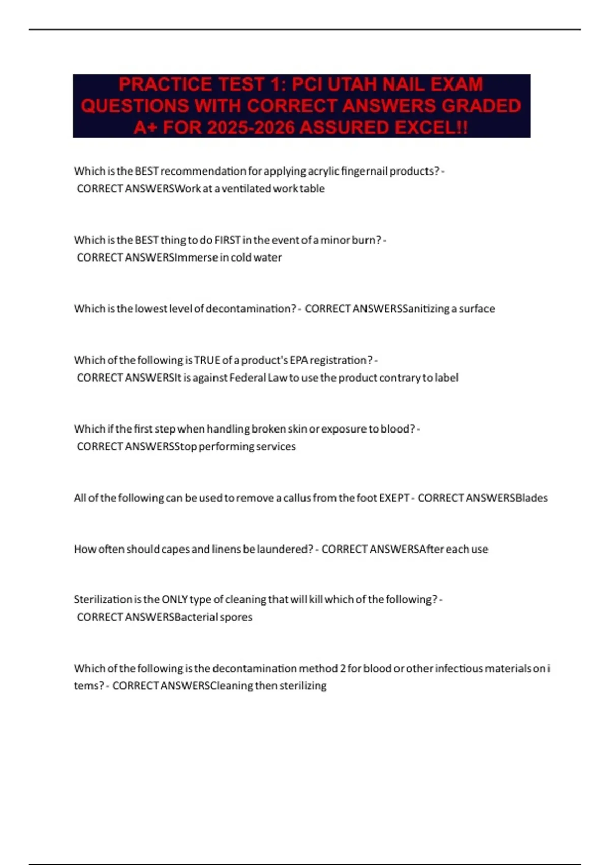 PRACTICE TEST 1: PCI UTAH NAIL EXAM