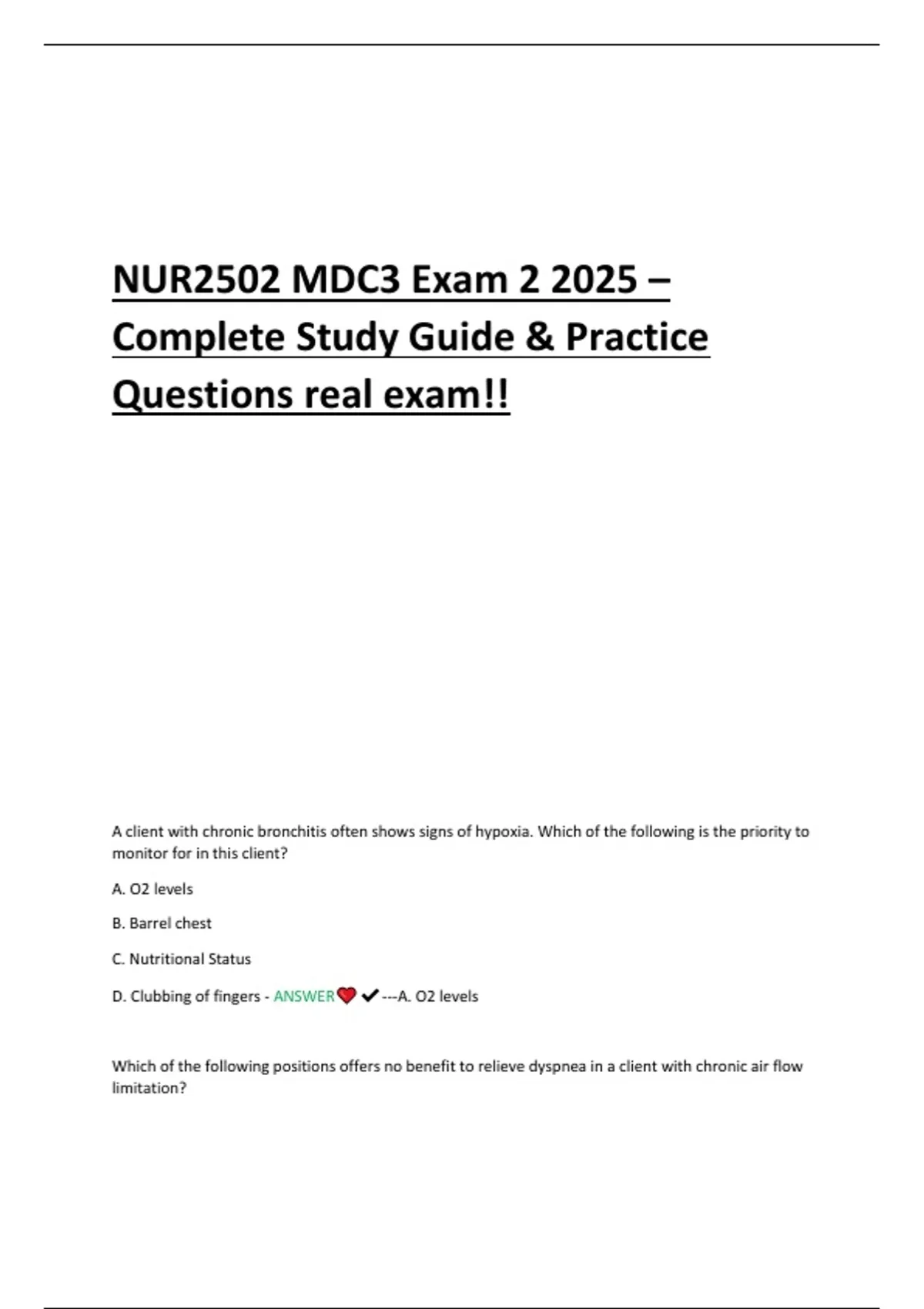 NUR2502 MDC3 Exam 2 2025 –