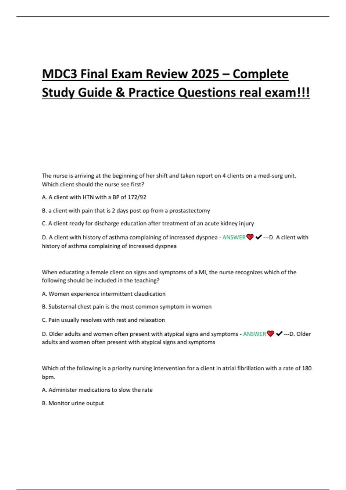 MDC3 Final Exam Review 2025 – Complete Study Guide & Practice Questions REAL EXAM!!!