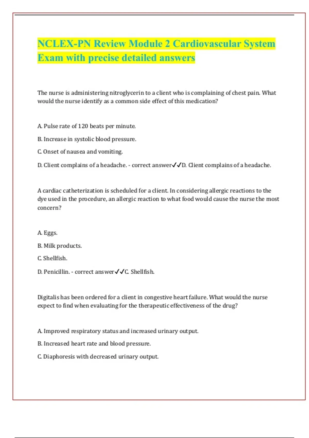NCLEX-PN Review Module 2 Cardiovascular System