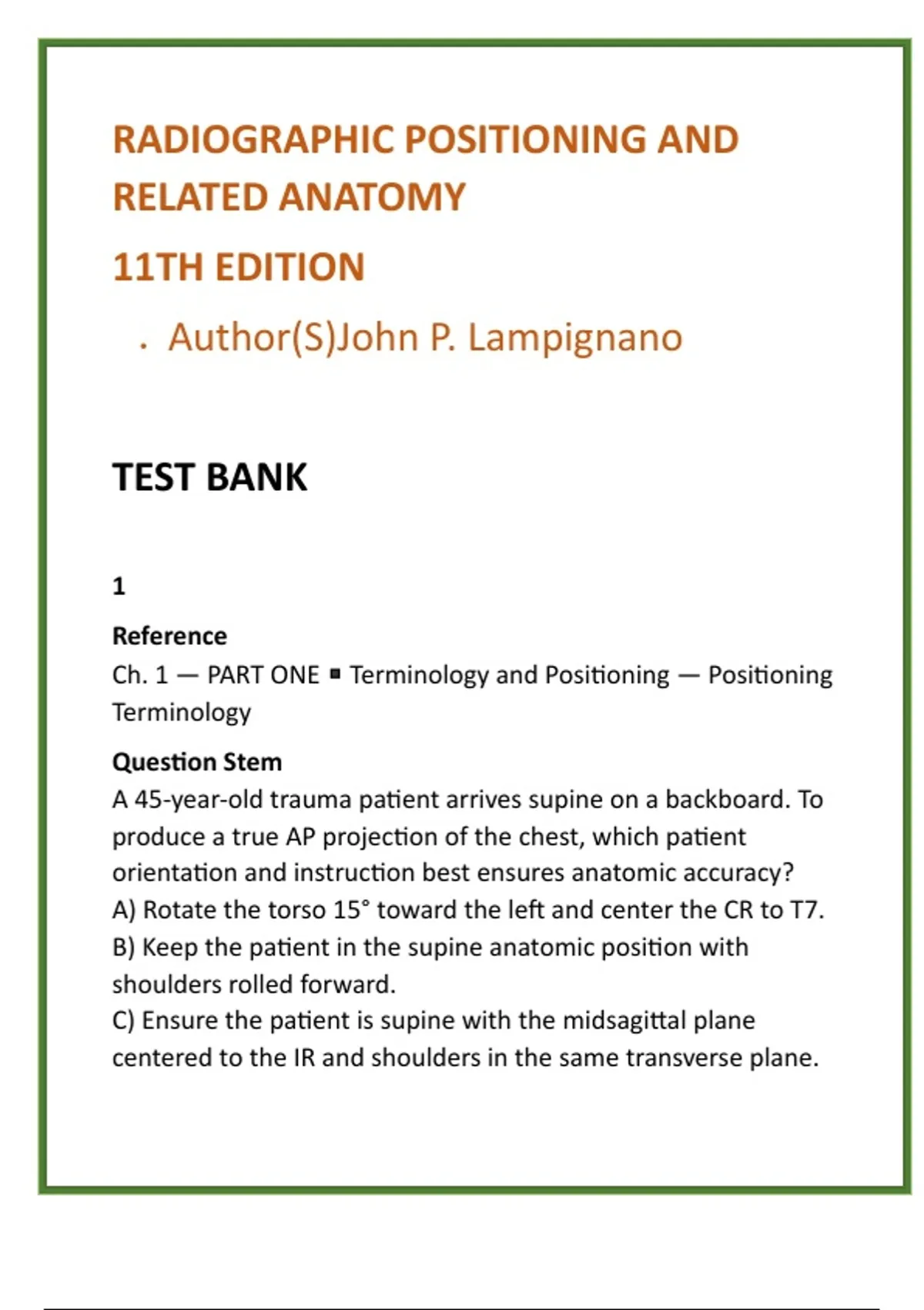 Lampignano, J. P. (2024). Textbook of Radiographic Positioning