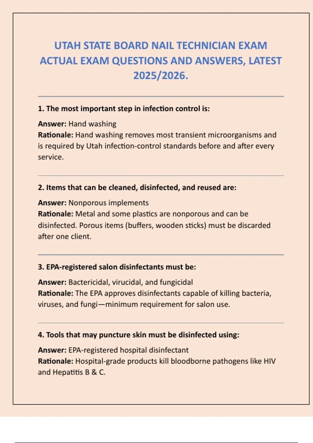 3. EPA-registered salon disinfectants must be: