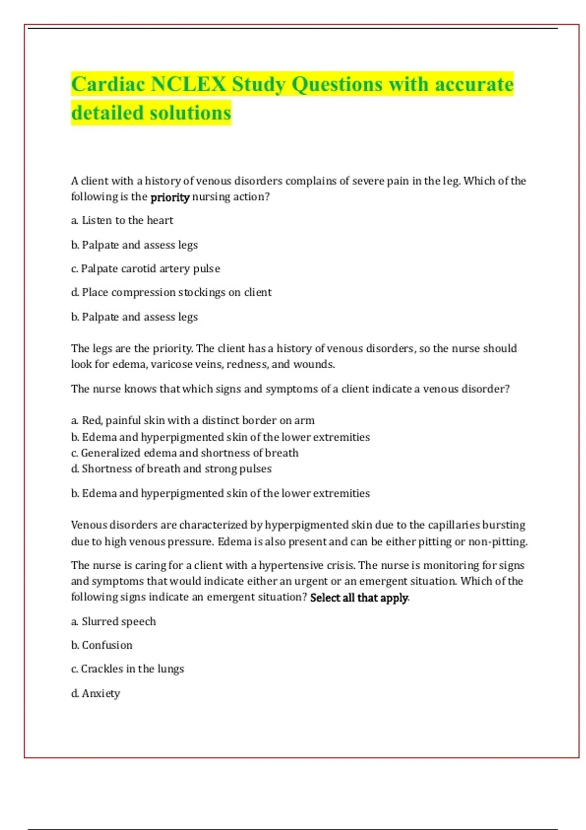 The legs are the priority. The client has a history of venous disorders, so the nurse should
