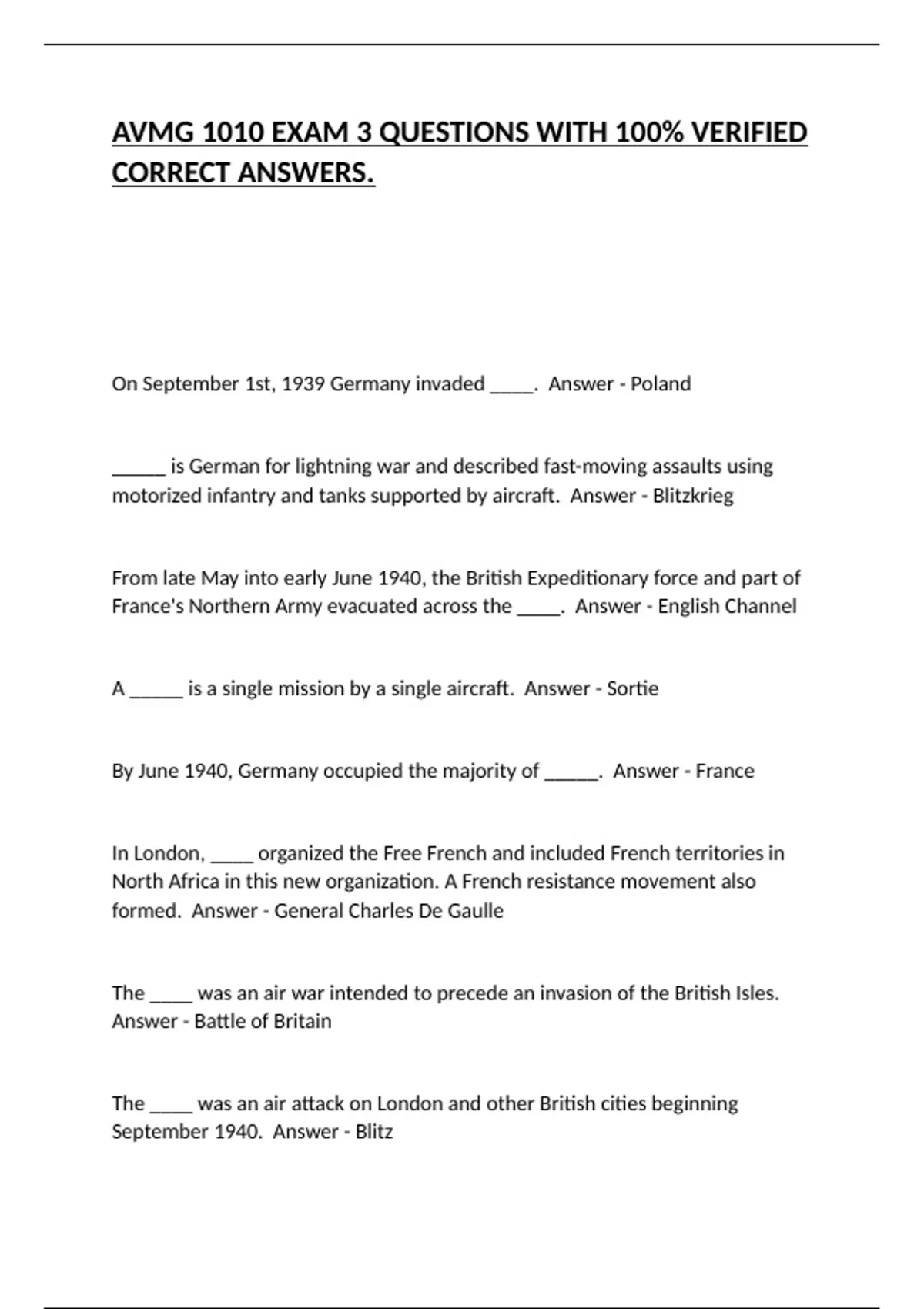 AVMG 1010 EXAM 3 QUESTIONS WITH 100% VERIFIED