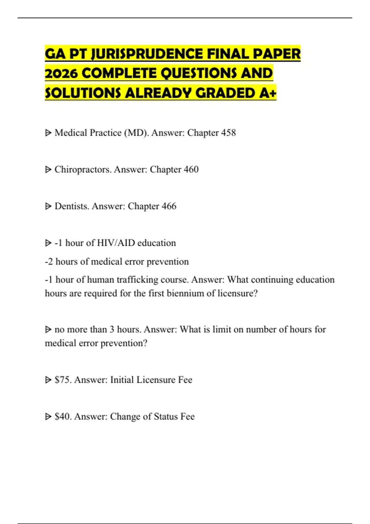 ⩥ Medical Practice (MD). Answer: Chapter 458