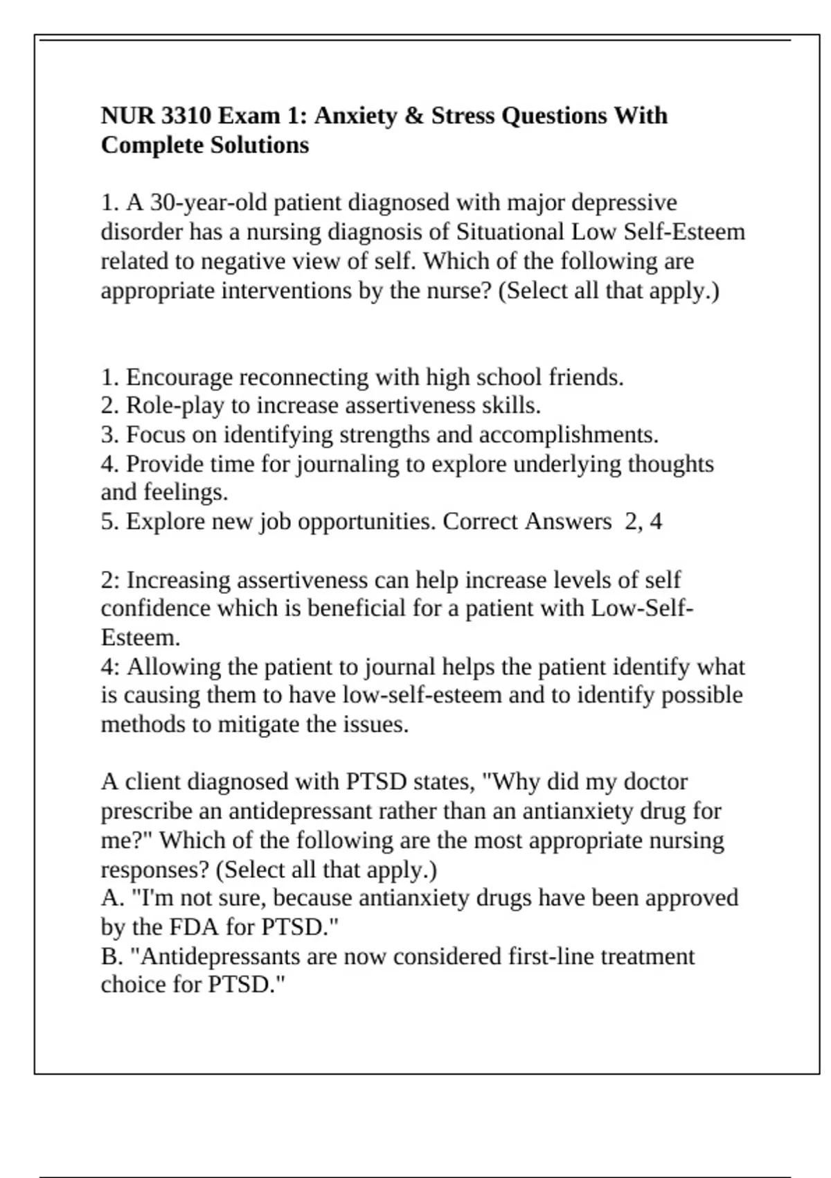antianxiety drugs on PTSD." Correct Answers Answer: B, D, E