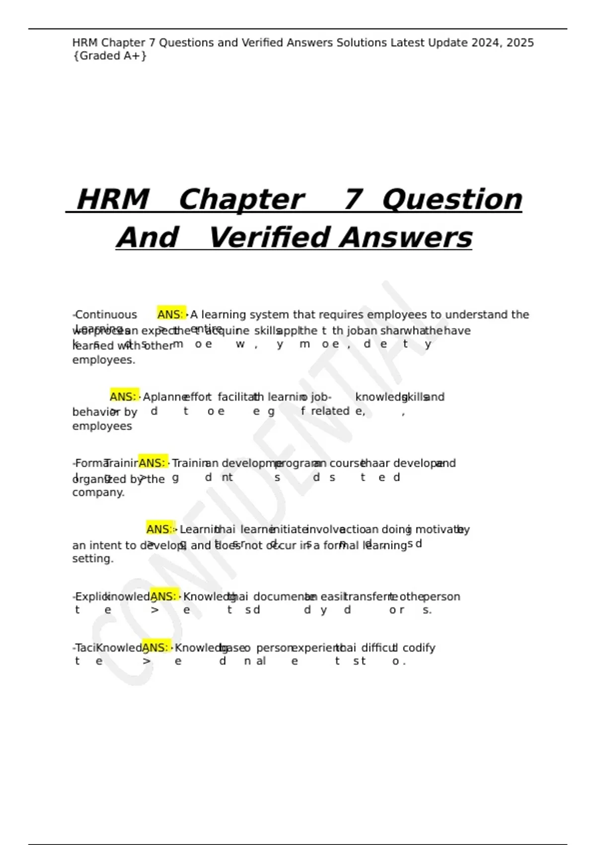 , HRM Chapter 7 Questions and Verified Answers Solutions Latest Update 2024, 2025