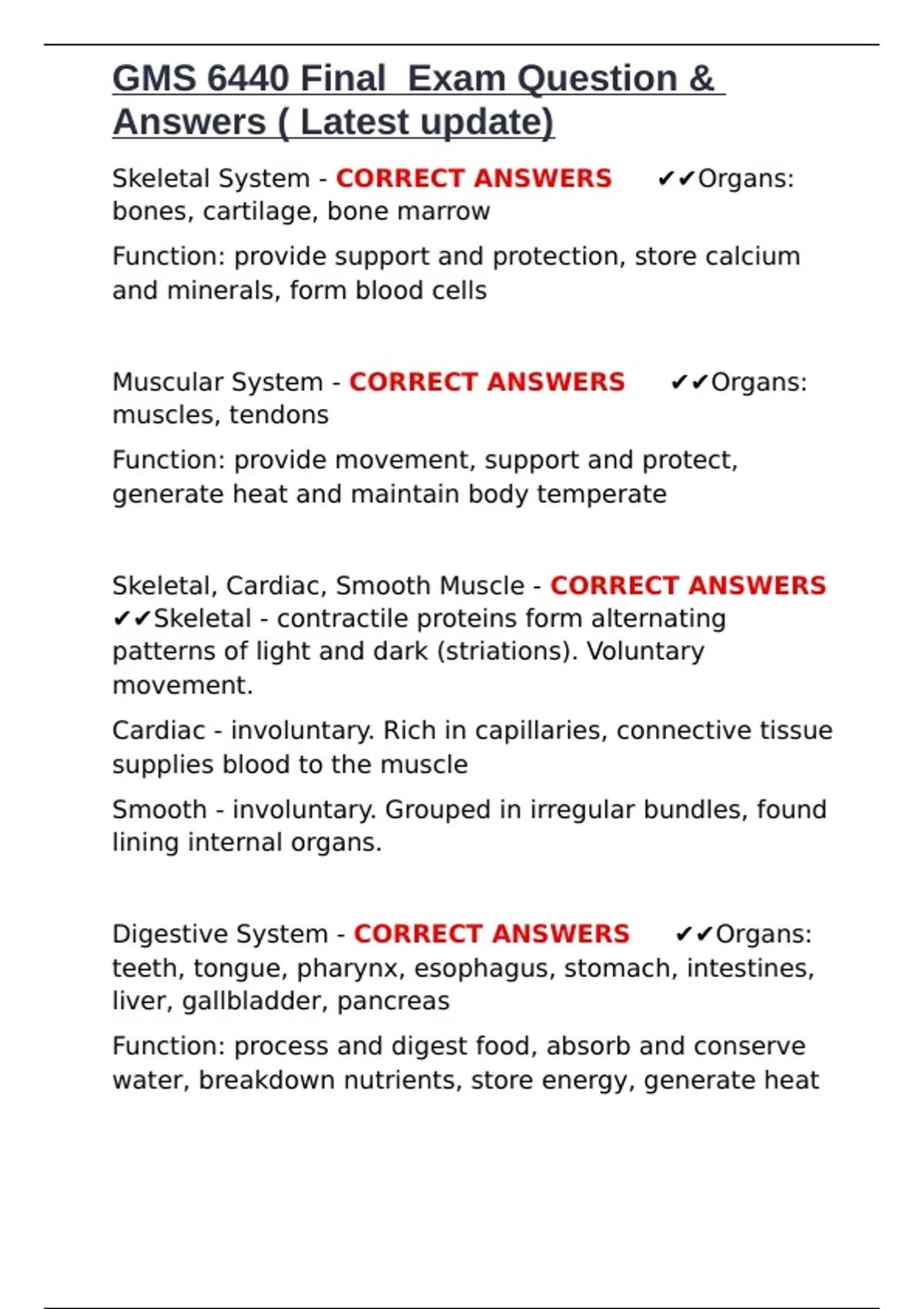 Muscular System - CORRECT ANSWERS ✔✔Organs: