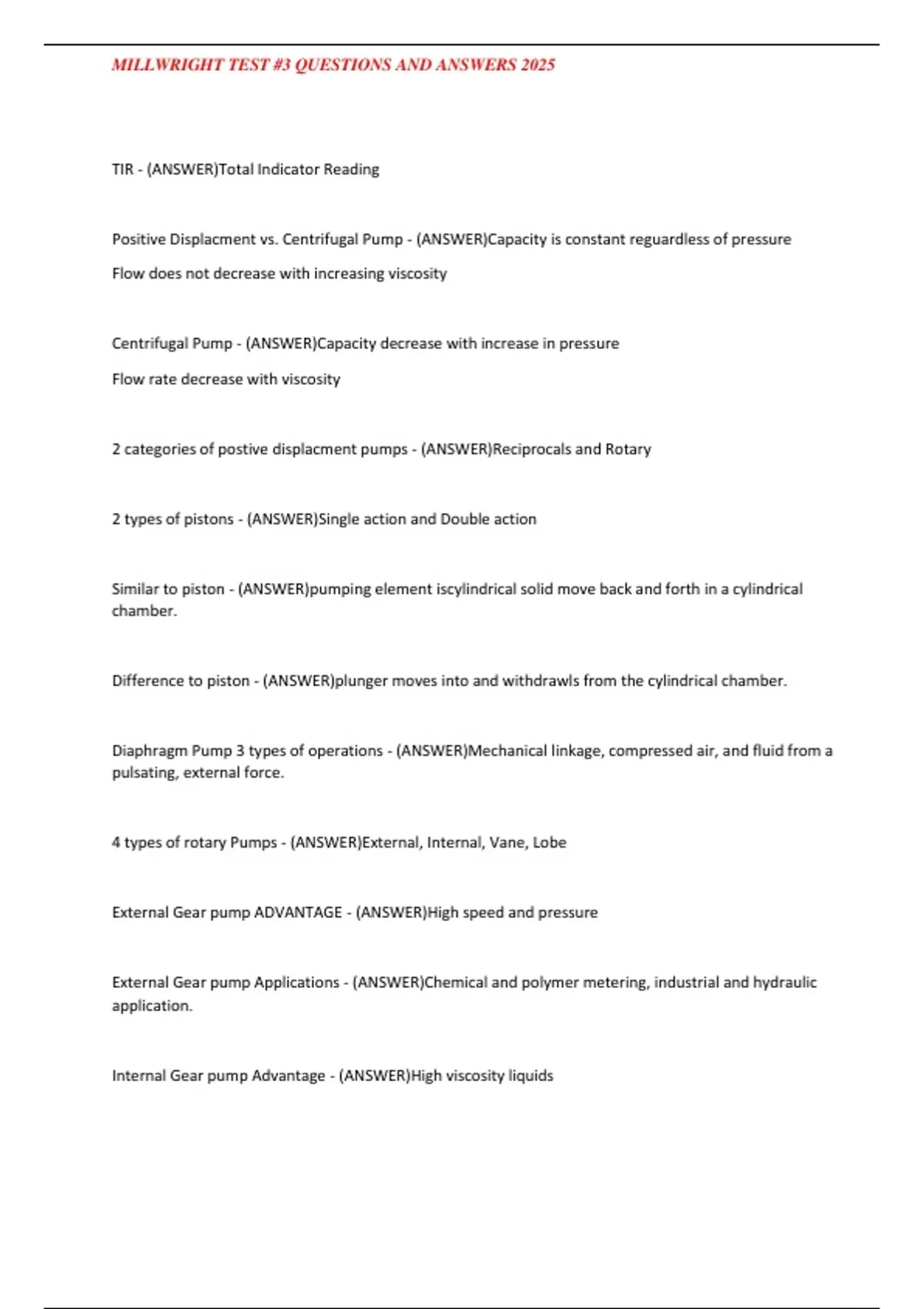 MILLWRIGHT TEST #3 QUESTIONS AND ANSWERS 2025