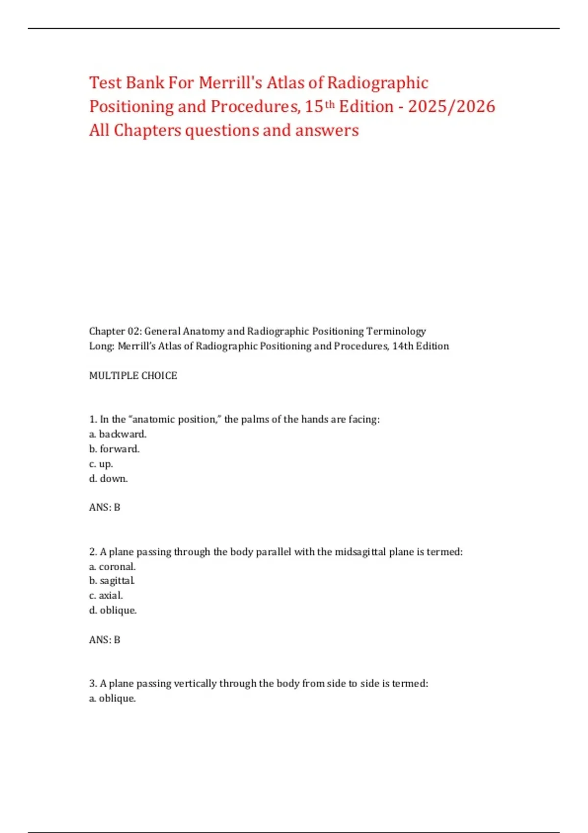 DOWNLOAD THE Test Bank for Merrill's Atlas of Radiographic Positioning