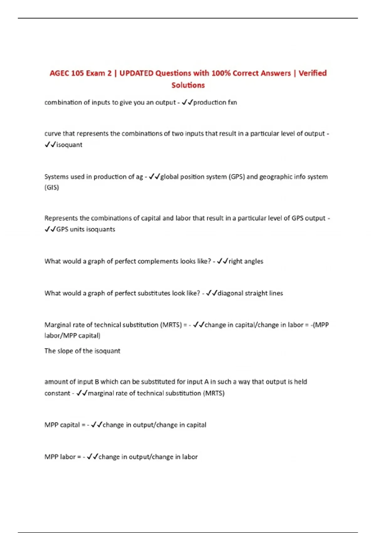 AGEC 105 Exam 2 | UPDATED Questions with 100% Correct Answers | Verified Solutions