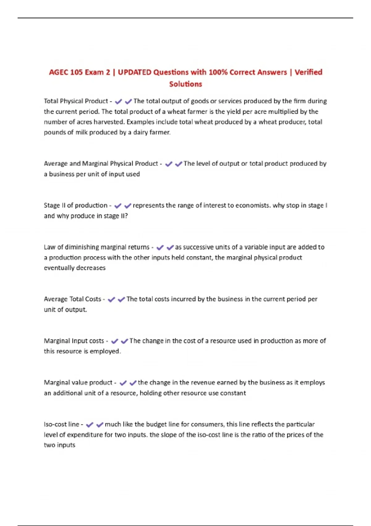 AGEC 105 Exam 2 | UPDATED Questions with 100% Correct Answers | Verified Solutions