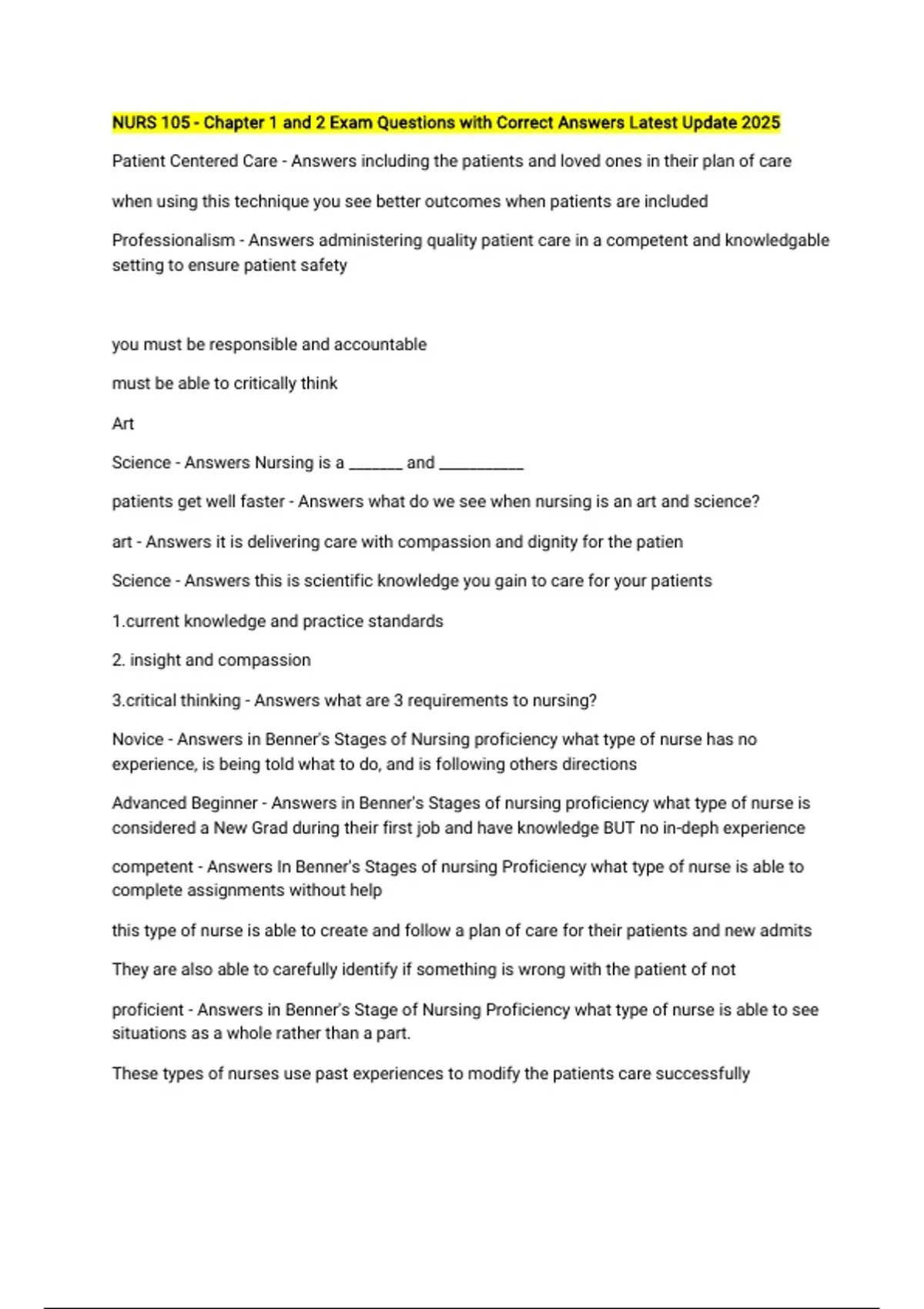 NURS 105 - Chapter 1 and 2 Exam Questions with Correct Answers Latest Update 2025