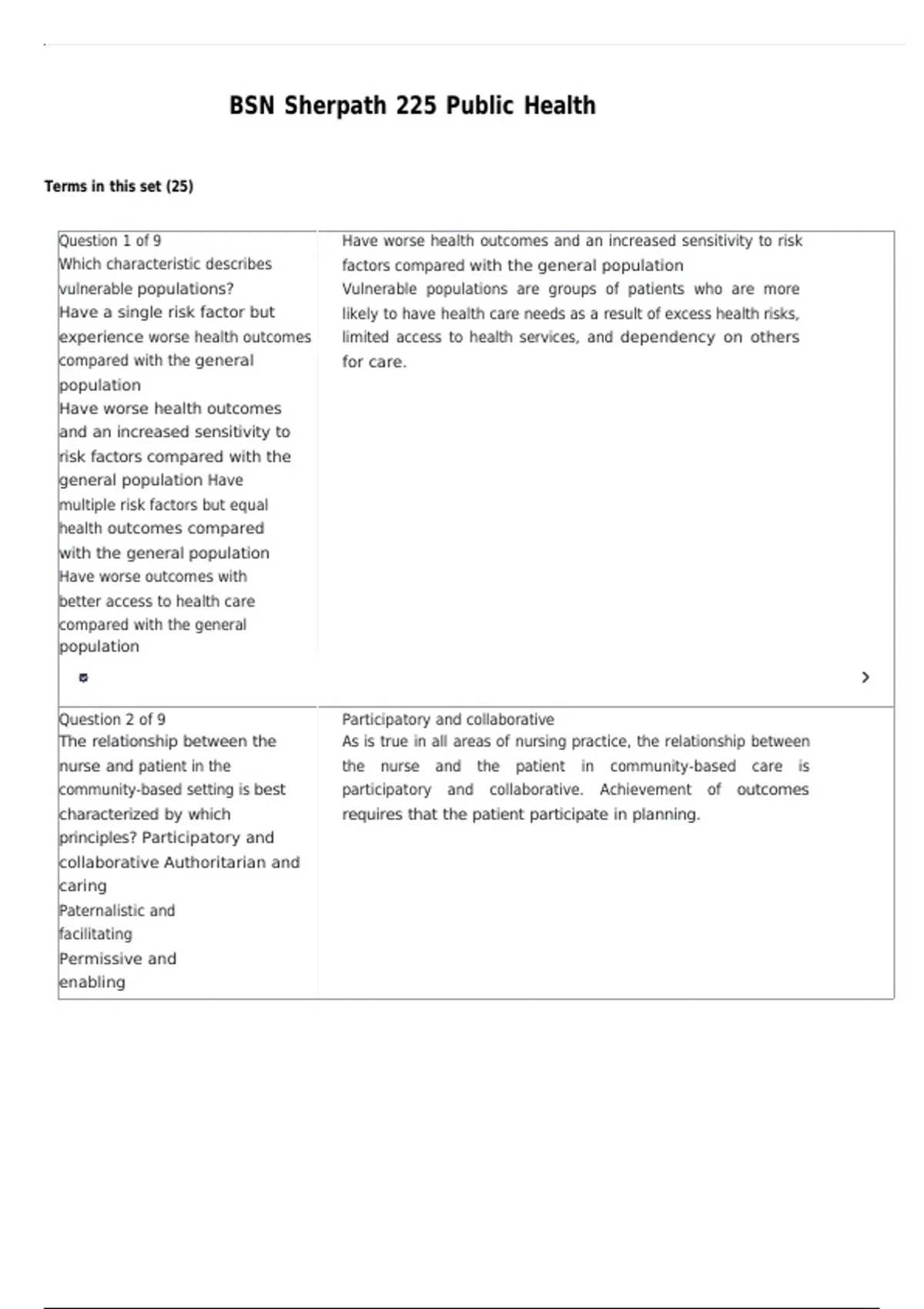 Question 1 of 9 Have worse health outcomes and an increased sensitivity to risk