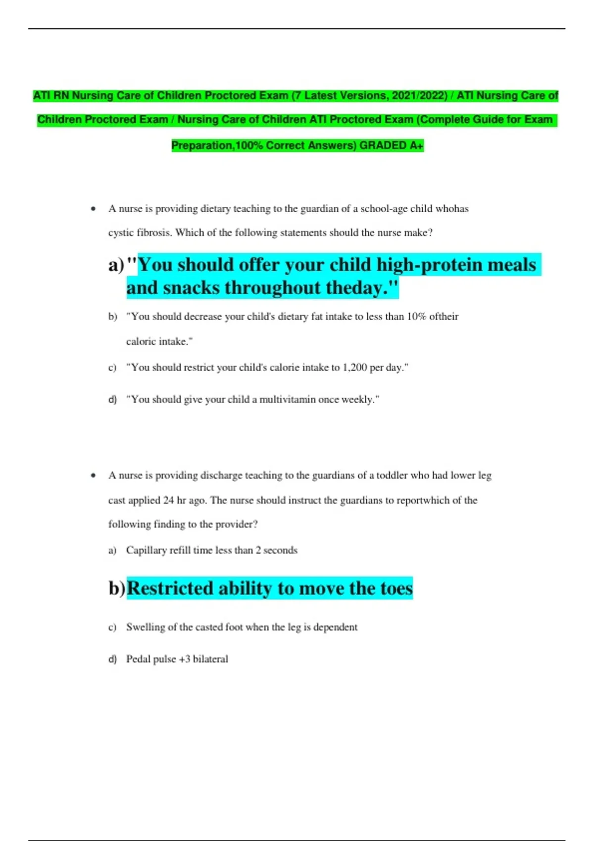 Children Proctored Exam / Nursing Care of Children ATI Proctored Exam (Complete Guide for Exam
