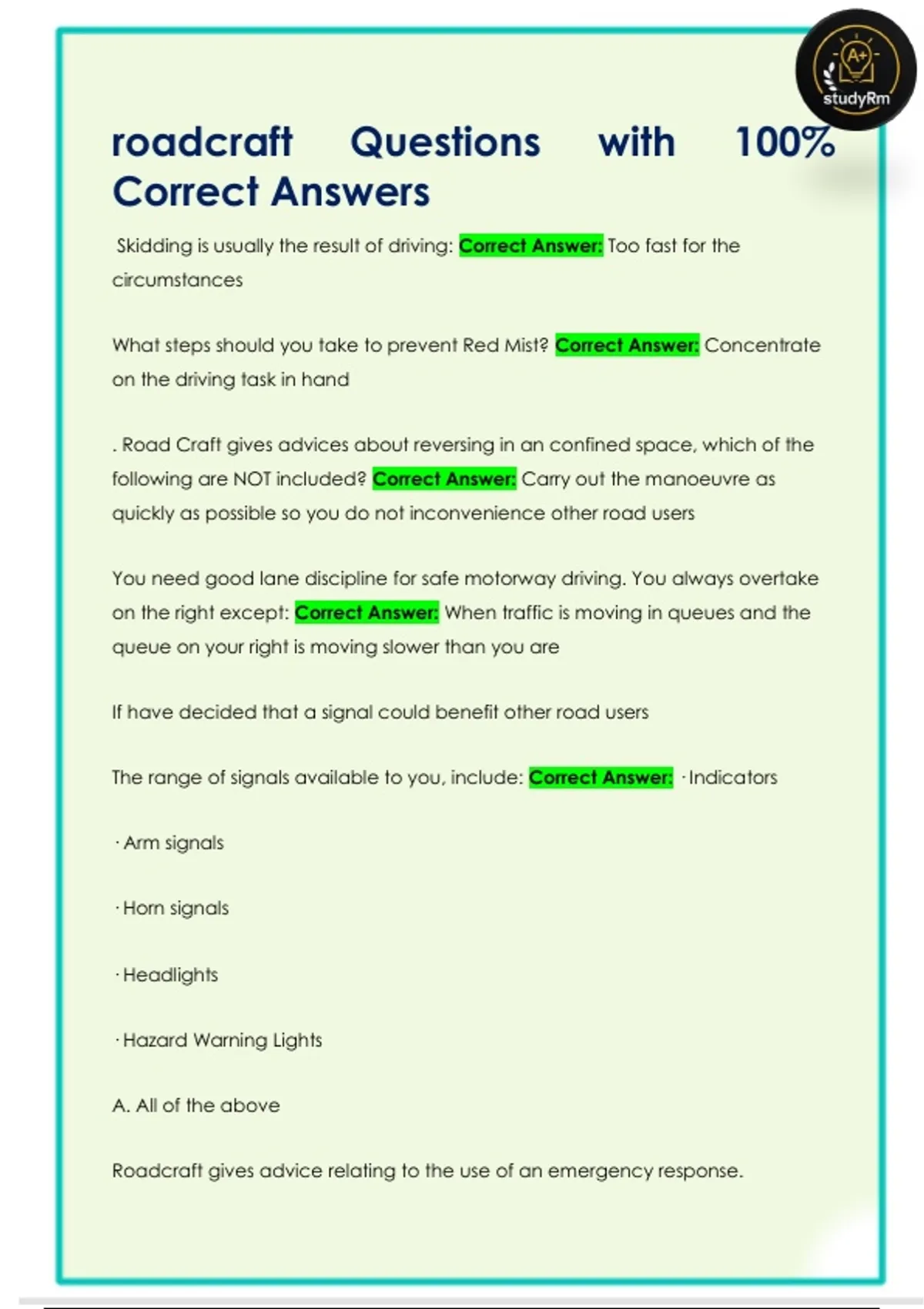 following are NOT included? Correct Answer: Carry out the manoeuvre as