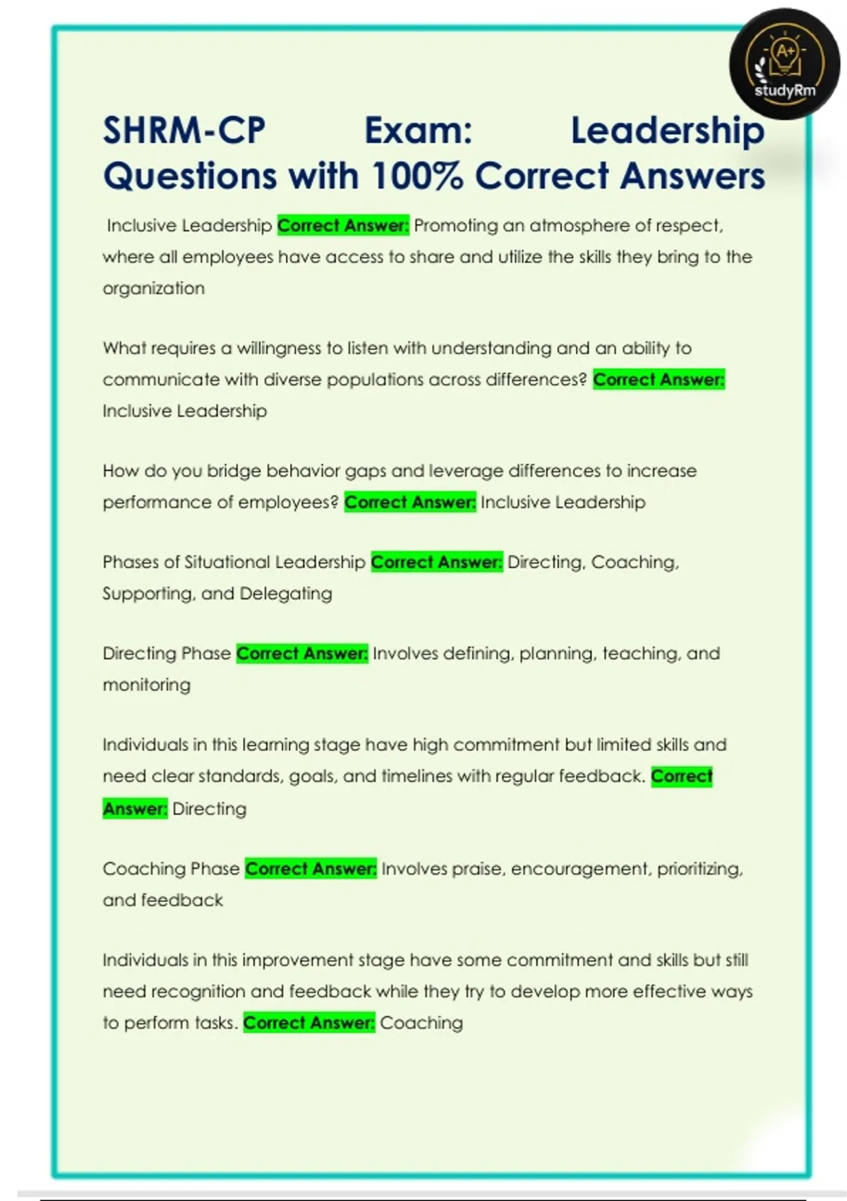 SHRM-CP Exam: Leadership