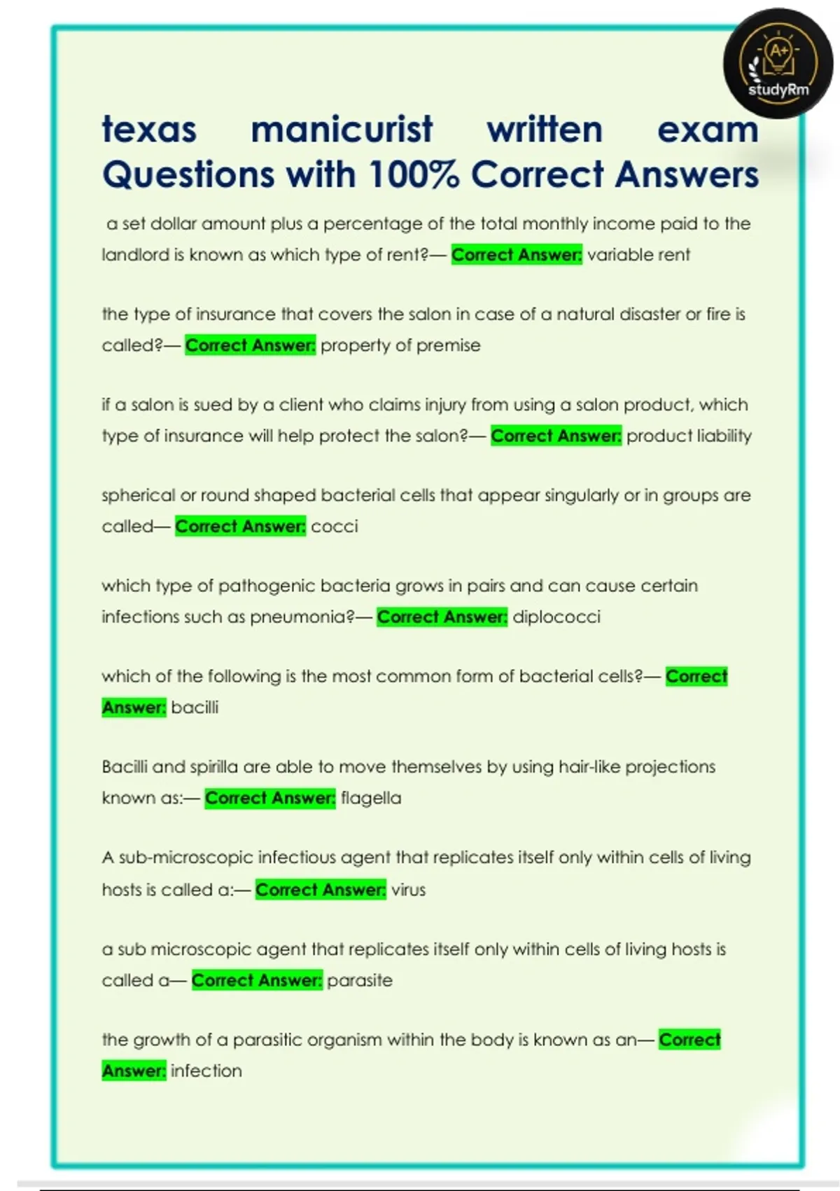 Questions with 100% Correct Answers