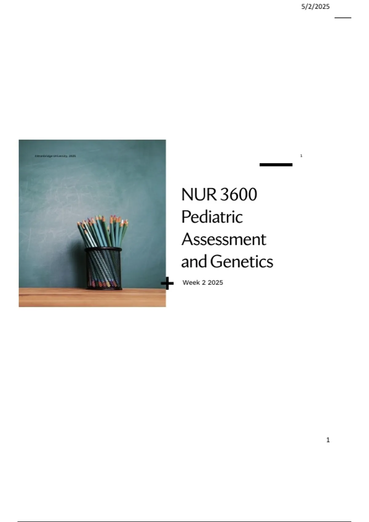 NUR 3600 - Pediatric Assessment and Genetics Week 2/NUR 3600 - Pediatric Assessment and Genetics Week 2 West Coast University Summer 2025