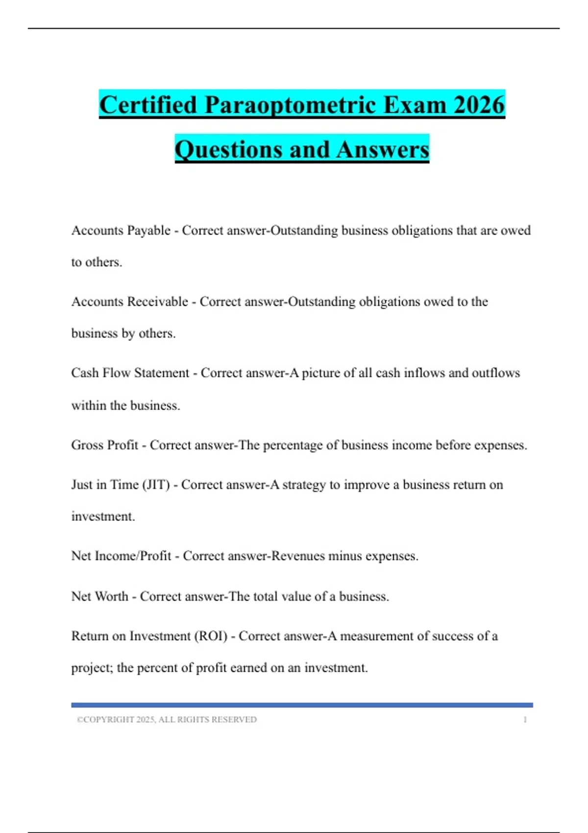 Certified Paraoptometric Exam 2026 Questions and Answers