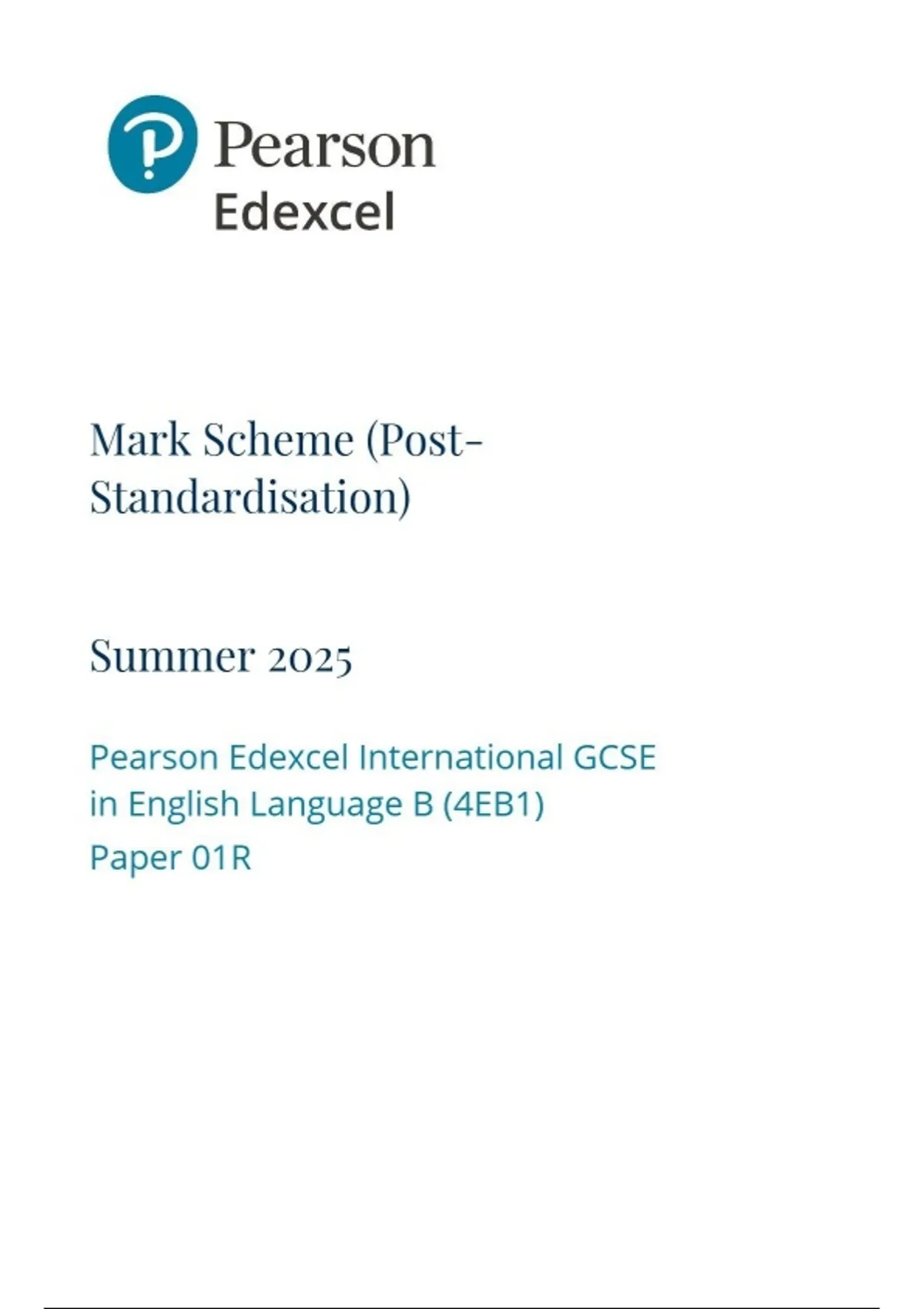 2025 Pearson Edexcel IGCSE English Language B (9–1) PAPER 1R (4EB1/01R) MARK SCHEME