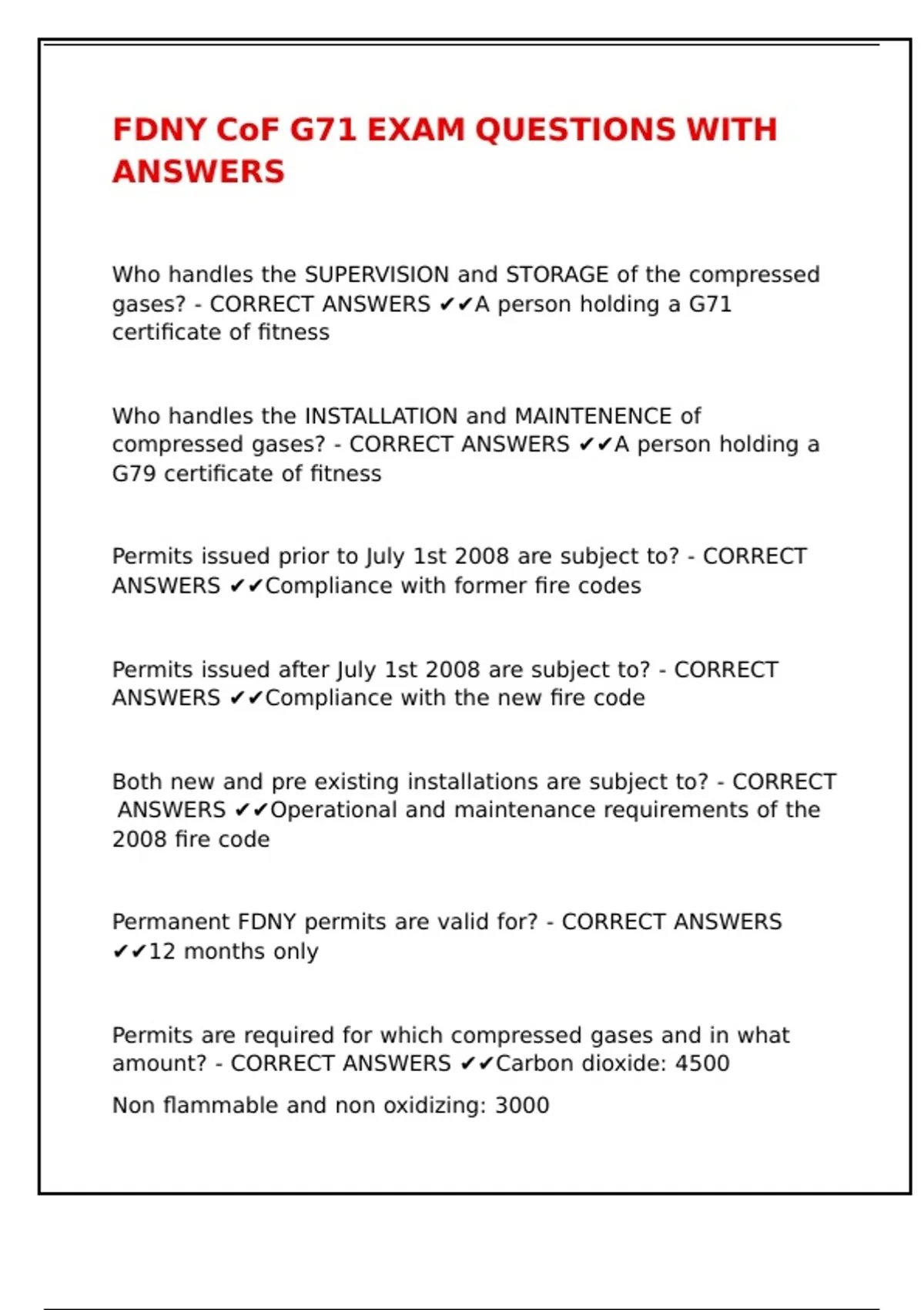 FDNY CoF G71 EXAM QUESTIONS WITH ANSWERS