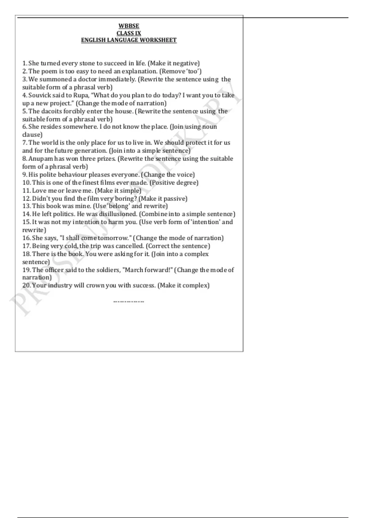 ENGLISH LANGUAGE WORKSHEET