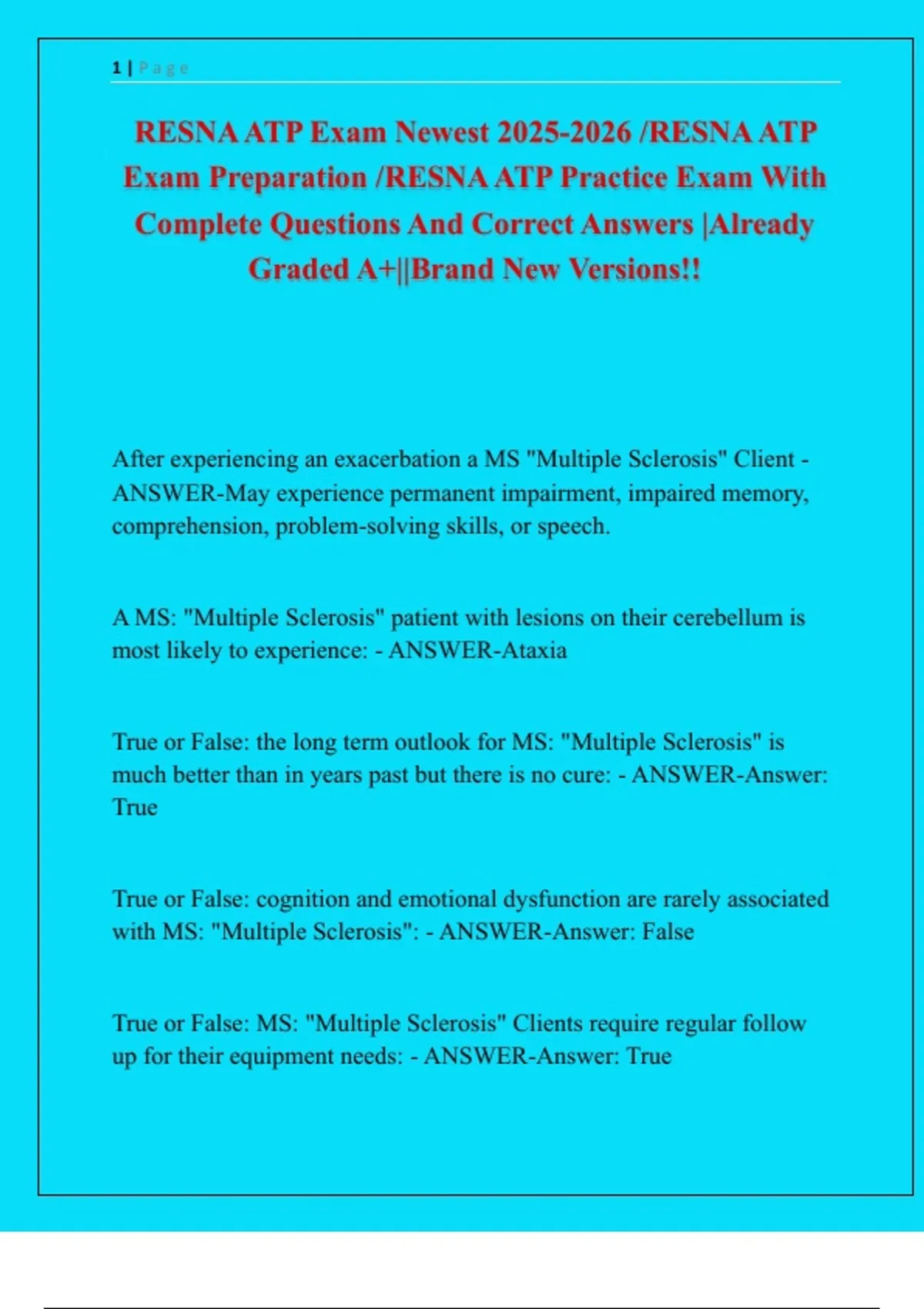 RESNA ATP Exam Newest 2025-2026 /RESNA ATP