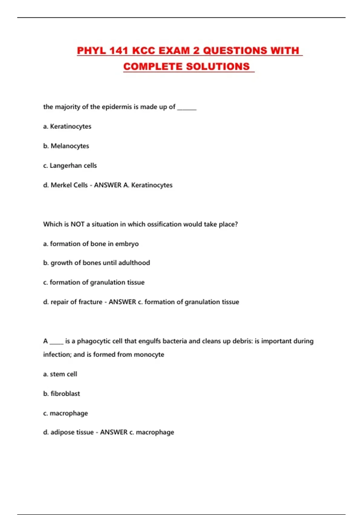PHYL 141 KCC EXAM 2 QUESTIONS WITH COMPLETE SOLUTIONS ...