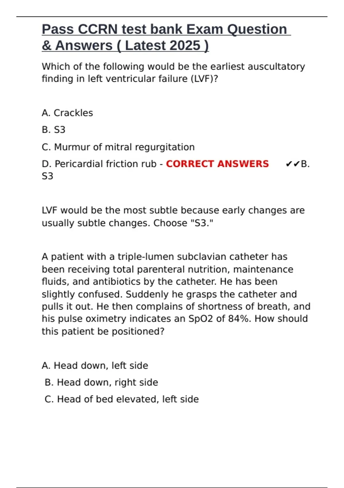D. Pericardial friction rub - CORRECT ANSWERS ✔✔B.