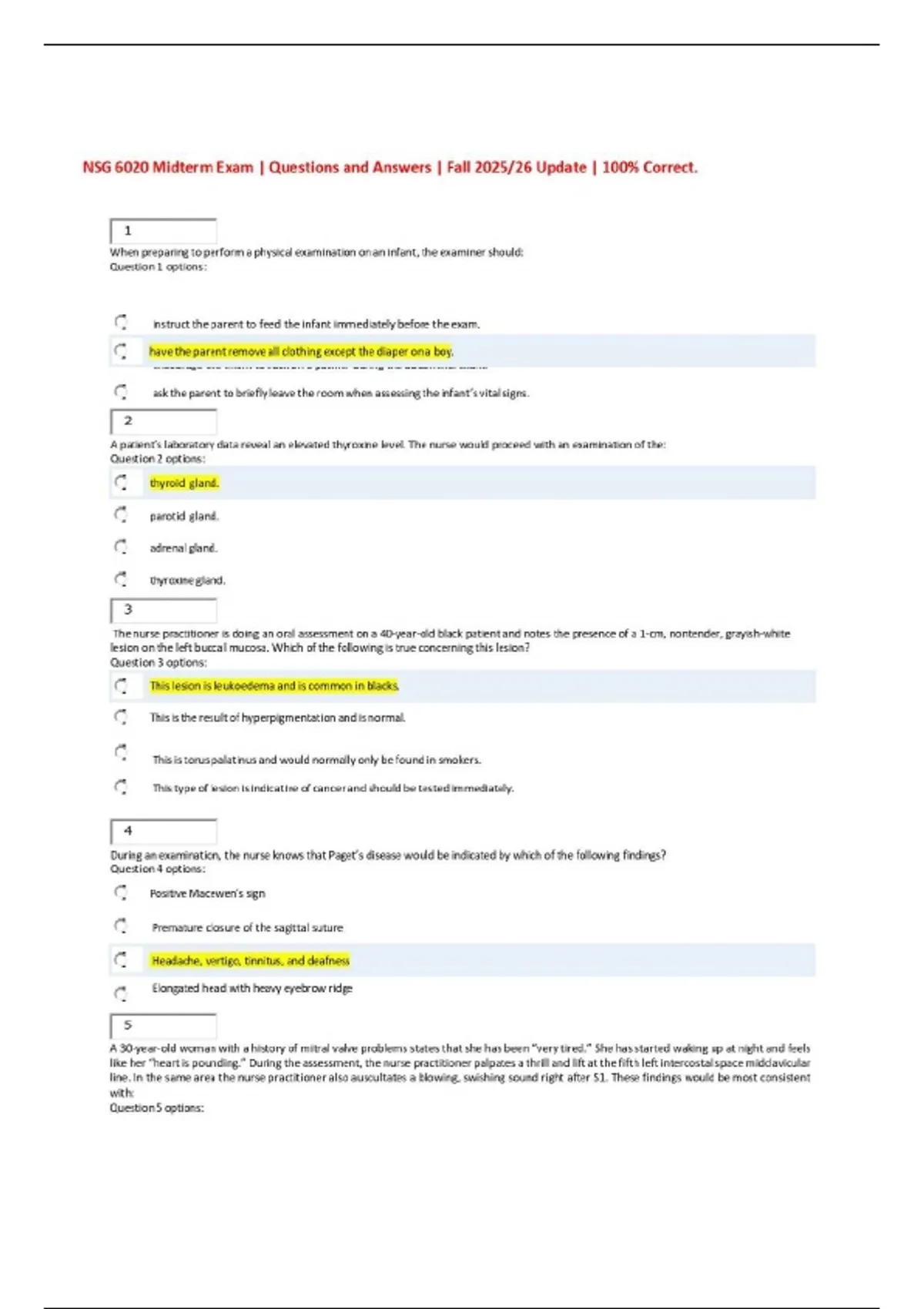 NSG 6020 Midterm Exam | Questions and Answers | Fall 2025/26 Update | 100% Correct.