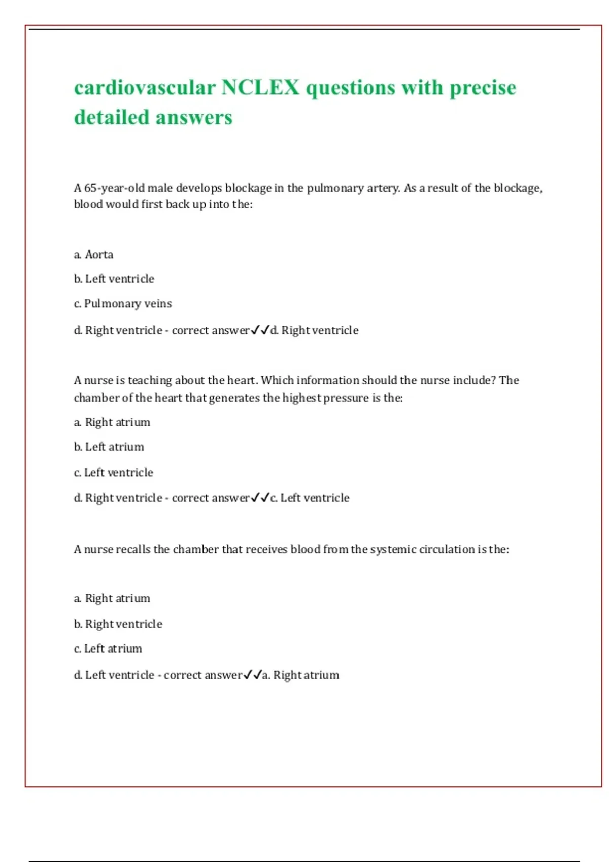 d. Right ventricle - correct answer✔✔d. Right ventricle