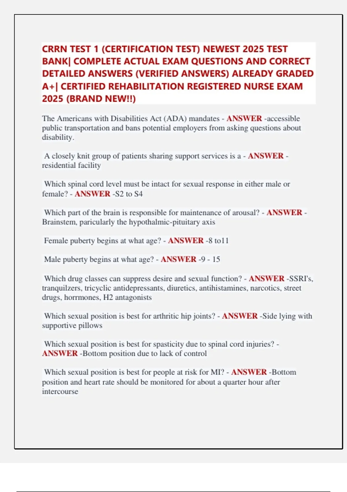 A+| CERTIFIED REHABILITATION REGISTERED NURSE EXAM