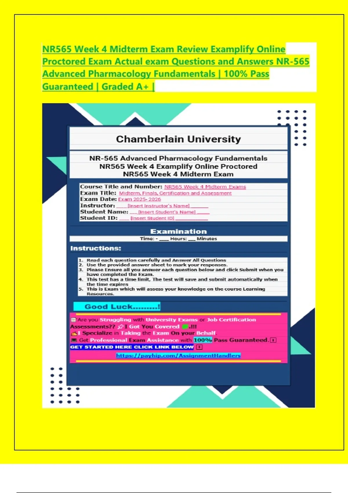 NR565 Week 4 Midterm Exam Review Examplify Online Proctored Exam Actual exam Questions and Answers NR-565 Advanced Pharmacology Fundamentals | 100% Pass Guaranteed | Graded A+ |