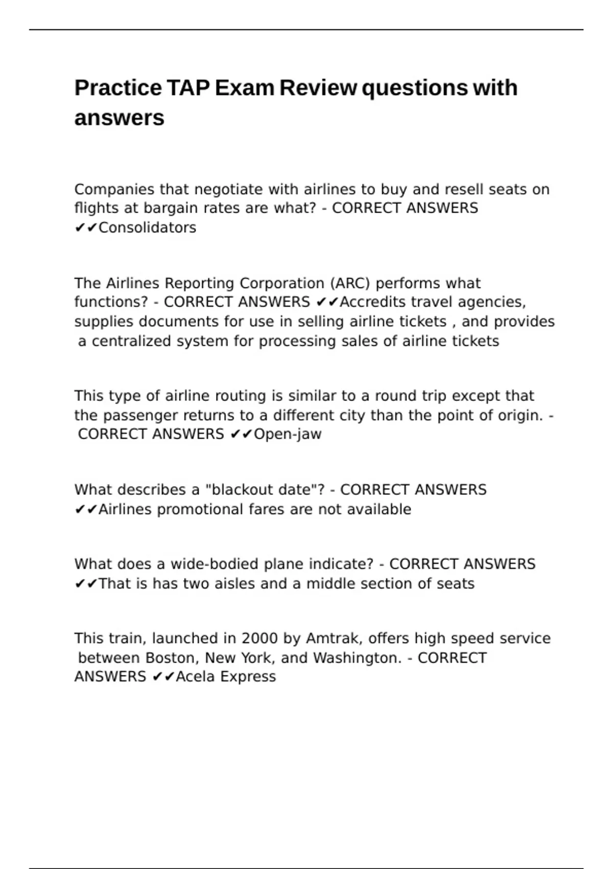 ANSWERS ✔✔Acela Express |\ |\