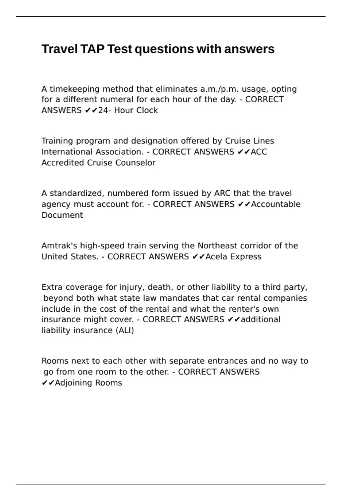 Travel TAP Test questions with answers |\ |\ |\ |\ |\