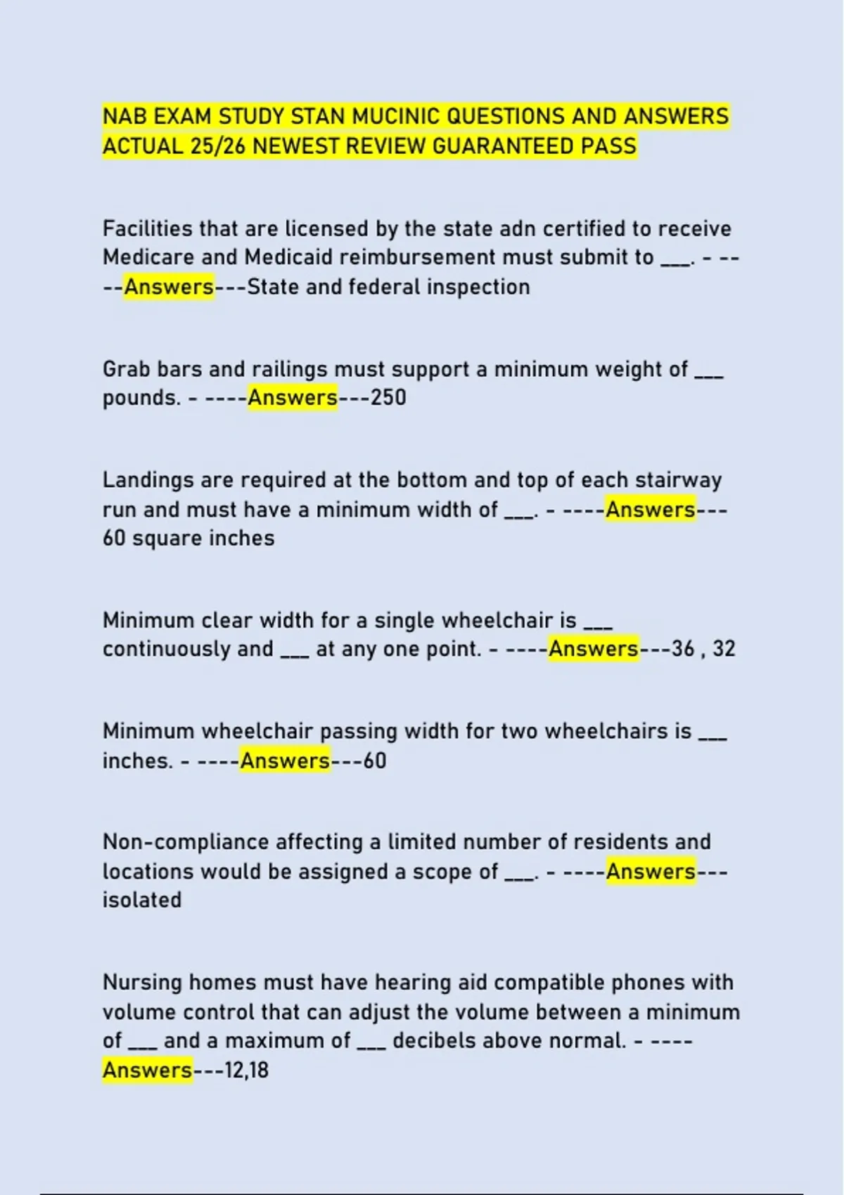 NAB EXAM STUDY STAN MUCINIC QUESTIONS AND ANSWERS ACTUAL 25/26 NEWEST REVIEW GUARANTEED PASS