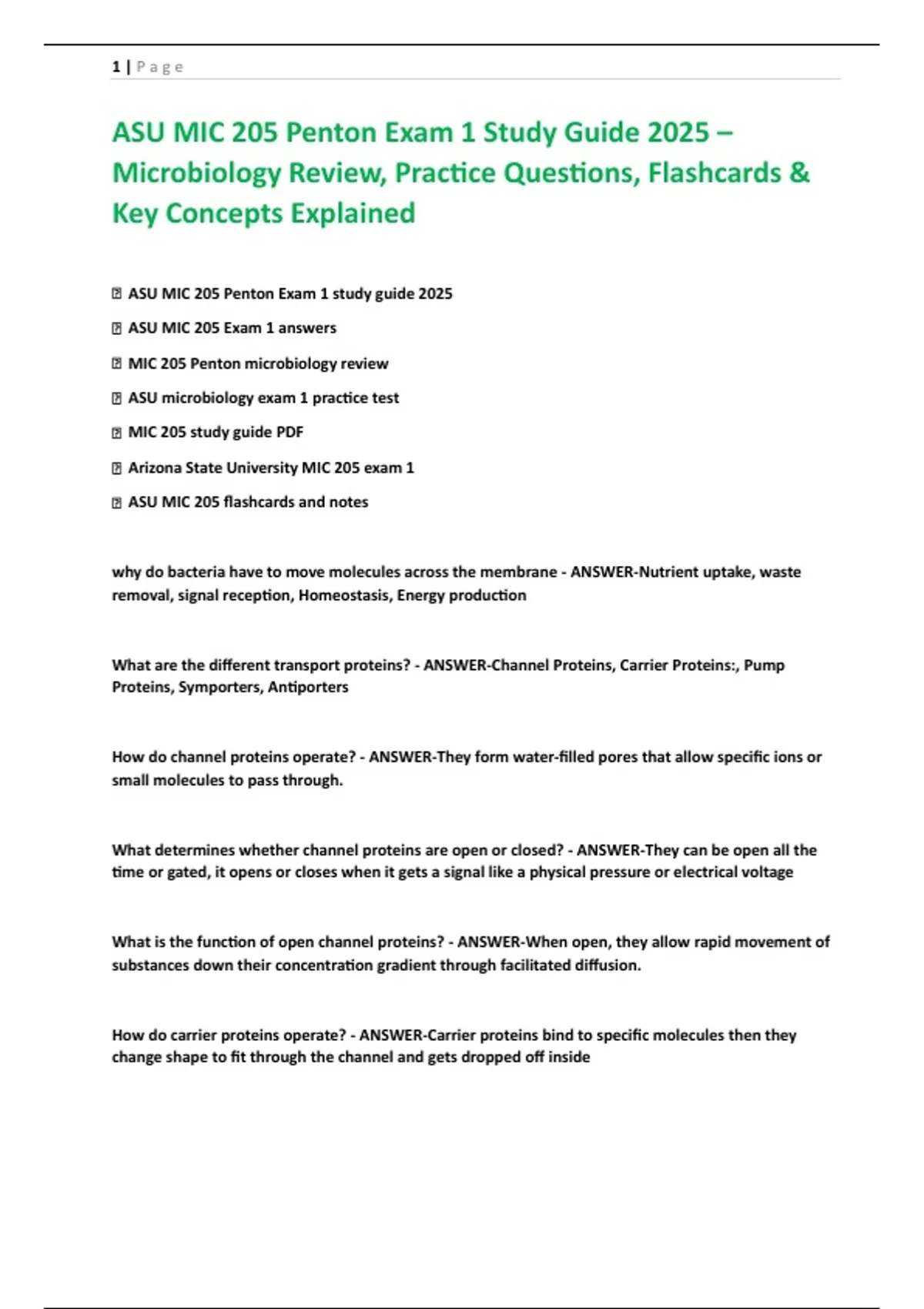 ASU MIC 205 Penton Exam 1 Study Guide 2025 –
