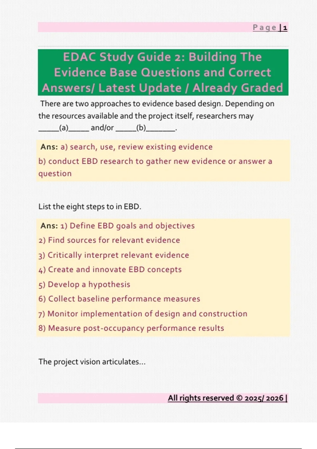 EDAC Study Guide 2: Building The Evidence Base Questions and Correct Answers/ Latest Update / Already Graded