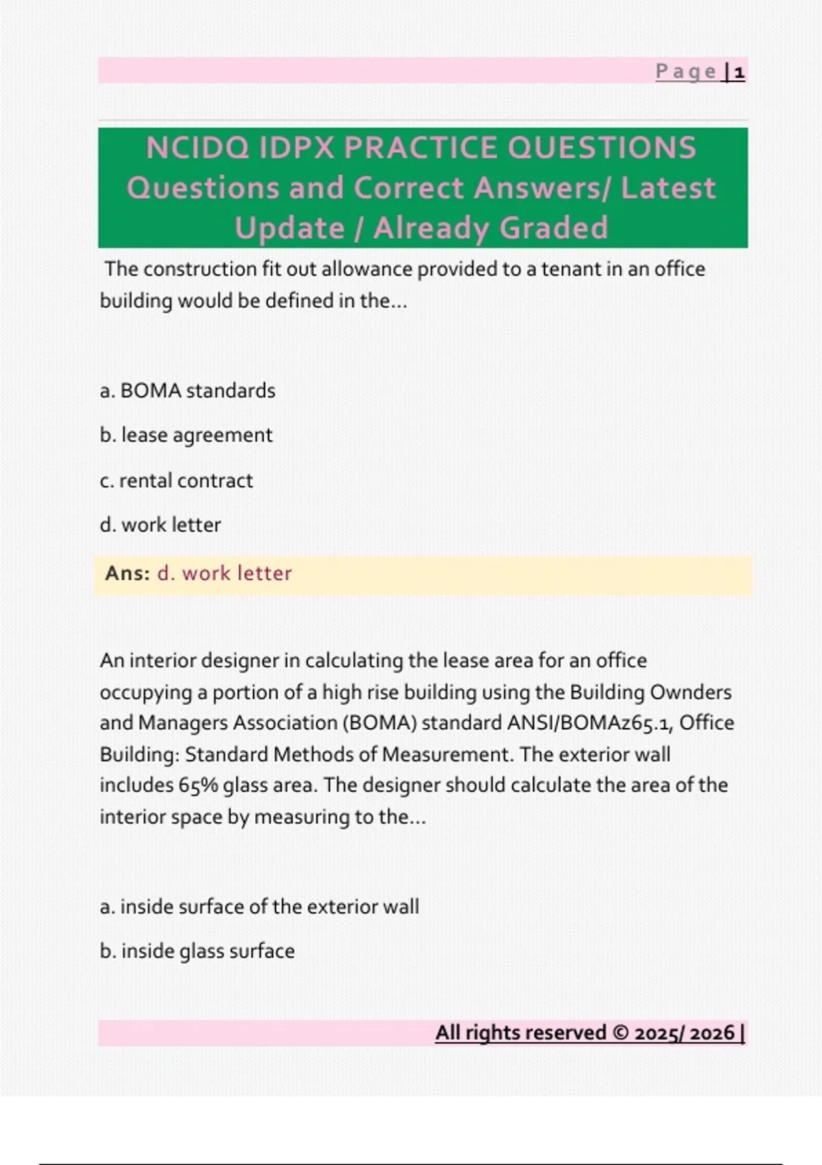 and Managers Association (BOMA) standard ANSI/BOMAz65.1, Office