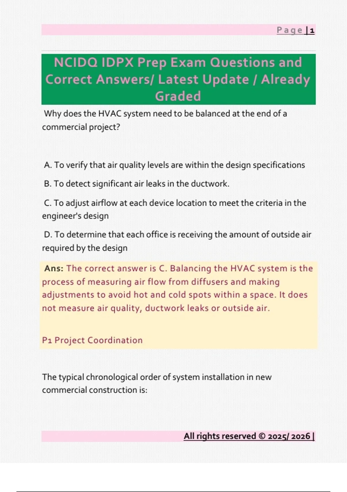 Ans: The correct answer is C. Balancing the HVAC system is the