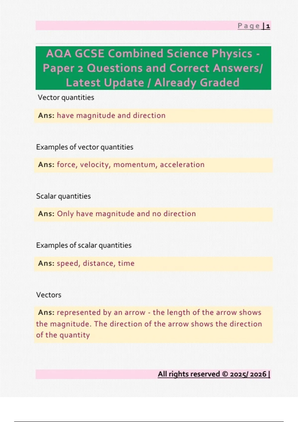 Paper 2 Questions and Correct Answers/