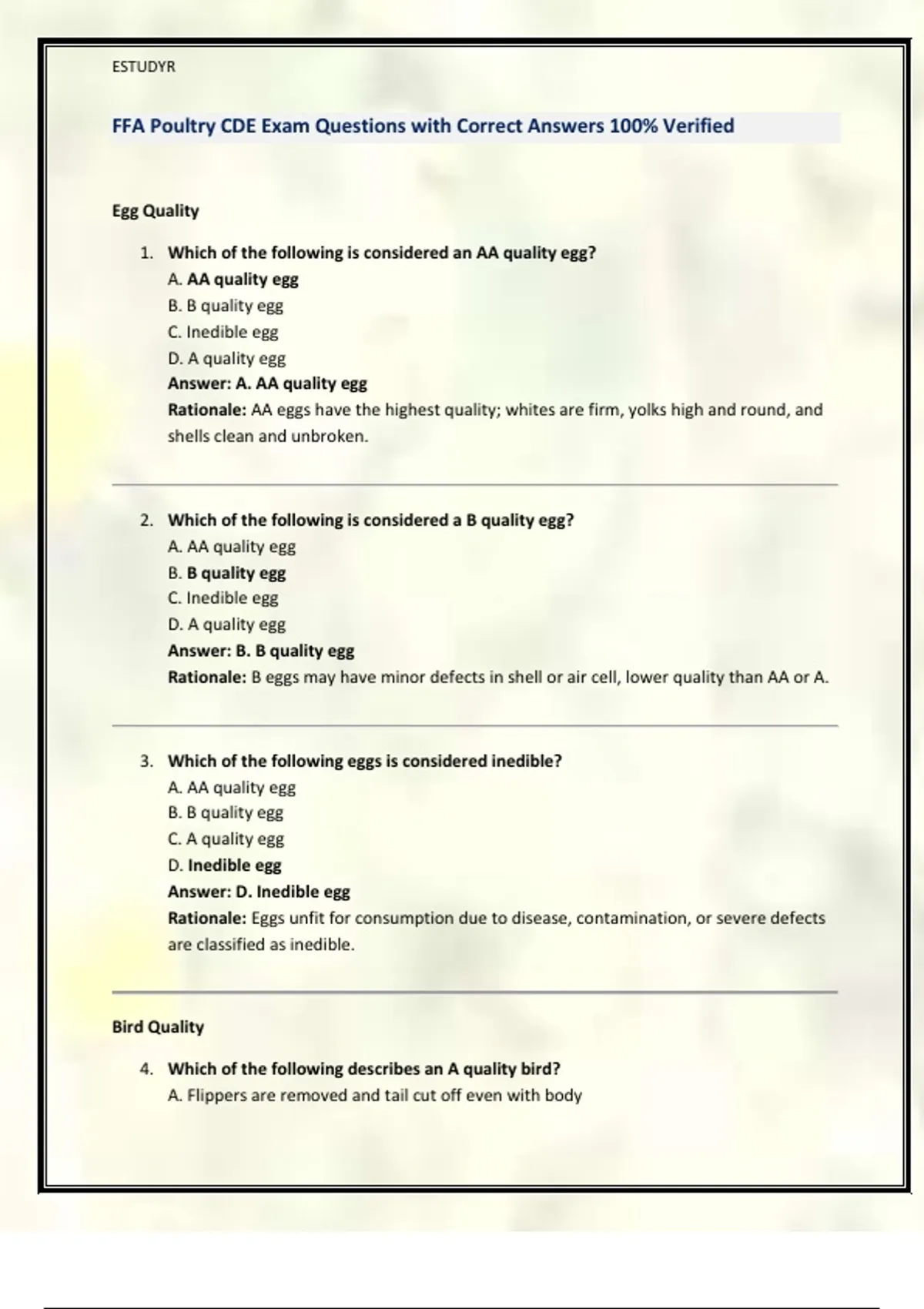 FFA Poultry CDE Exam Questions with Correct Answers 100% Verified