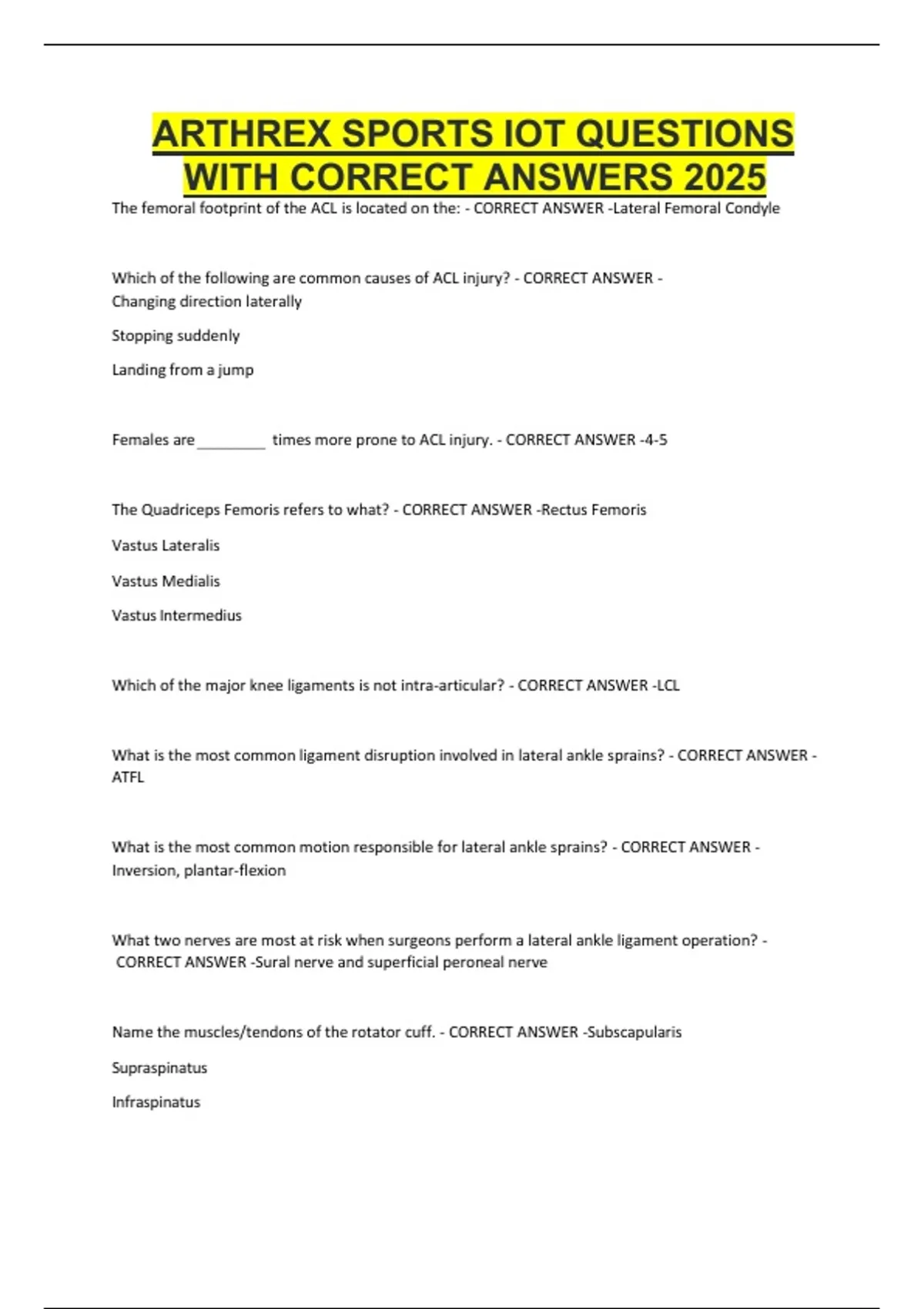 ARTHREX SPORTS IOT QUESTIONS WITH CORRECT ANSWERS 2025
