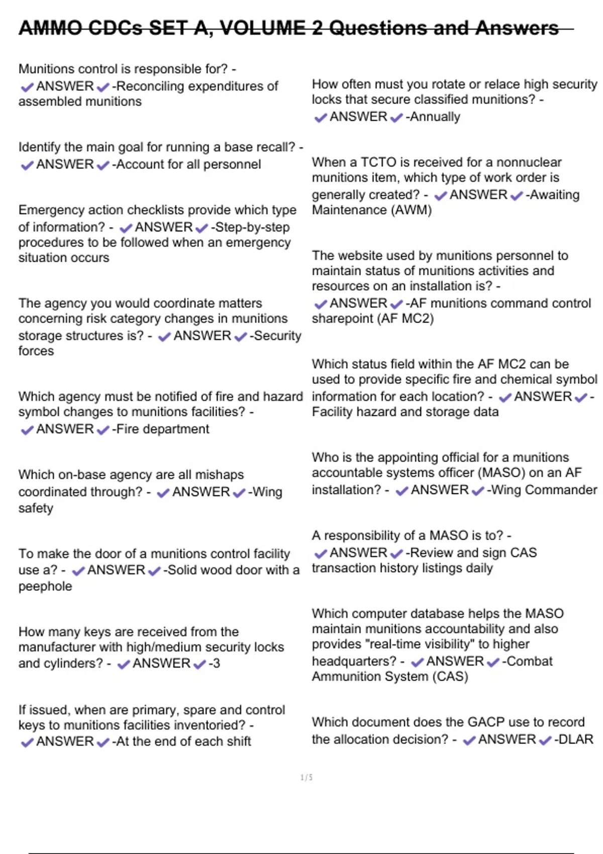 , AMMO CDCs SET A, VOLUME 2 Questions and Answers