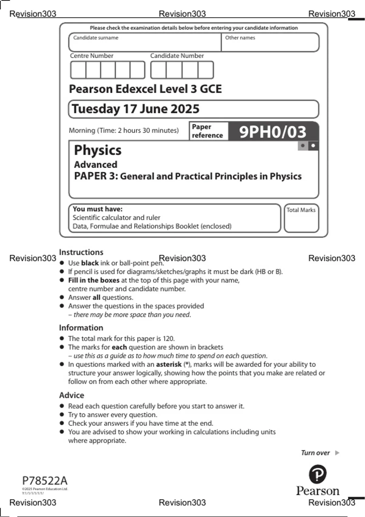 A-Level Edexcel 2025 Physics Paper 3 General and Practical Principles in Physics