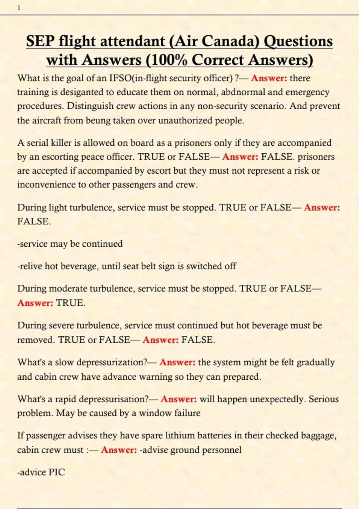uniform. As soon when you enter the aircraft. TRUE or FALSE— Answer: