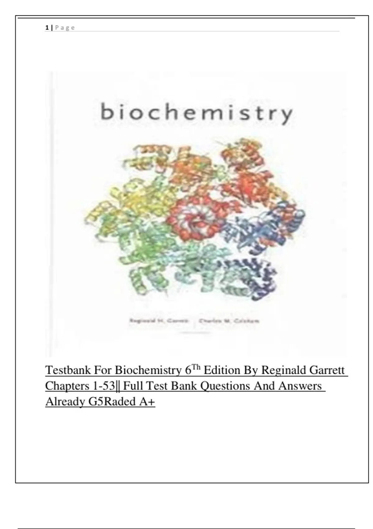 Testbank For Biochemistry 6Th Edition By Reginald Garrett