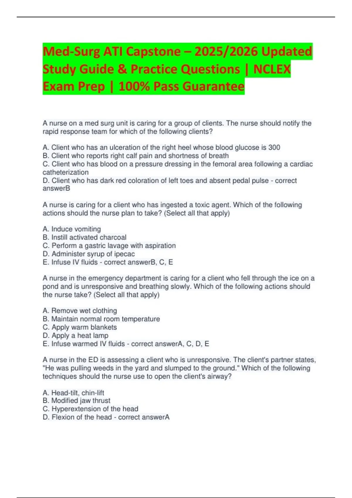 Med-Surg ATI Capstone – 2025/2026 Updated Study Guide & Practice Questions | NCLEX Exam Prep | 100% Pass Guarantee