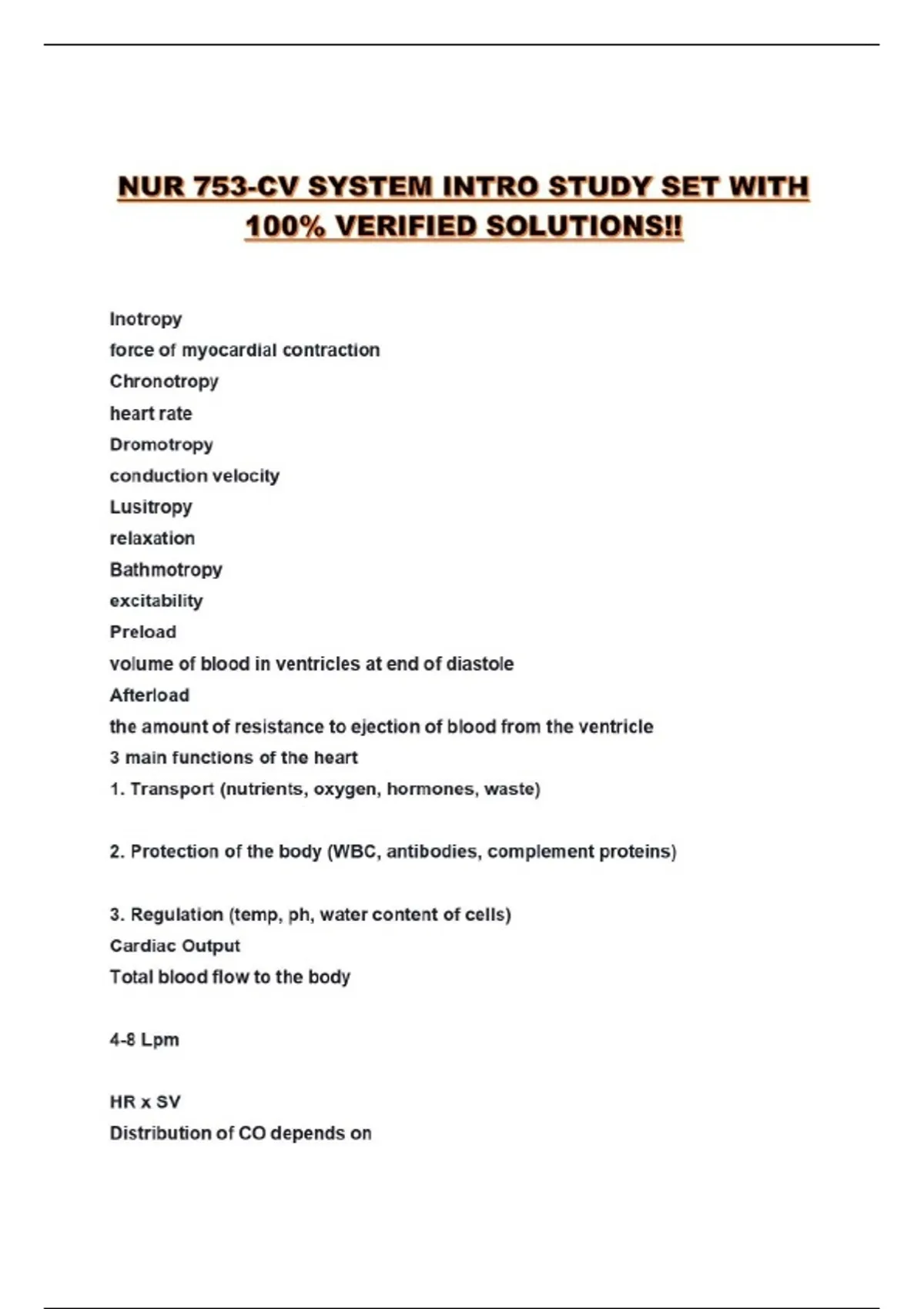 NUR 753-CV SYSTEM INTRO STUDY SET WITH 100% VERIFIED SOLUTIONS!!...